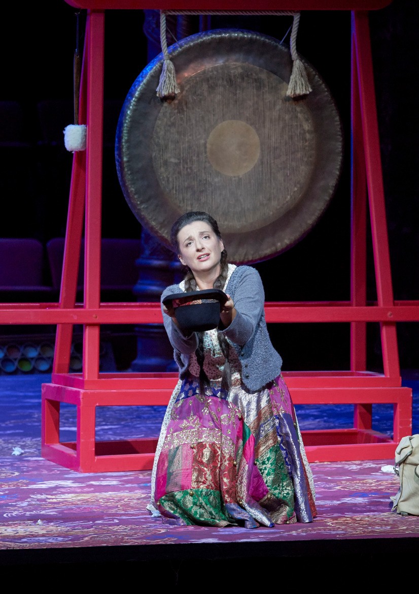 La acción se desarrolla en los años 20, es decir al tiempo de la composición de la ópera, con algunos toques curiosos, como presentar a los 3 ministros como personajes sacados de la Commedia dell’arte y al Emperdor Altoum en silla de ruedas. La escenografía, simple es este caso, es del propio Marco Arturo Marelli, como la iluminación. El vestuario es obra de Dagmar Niefind. En suma, es una producción alejada de la grandiosidad de otras, más intimista, pero que funciona razonablemente bien.