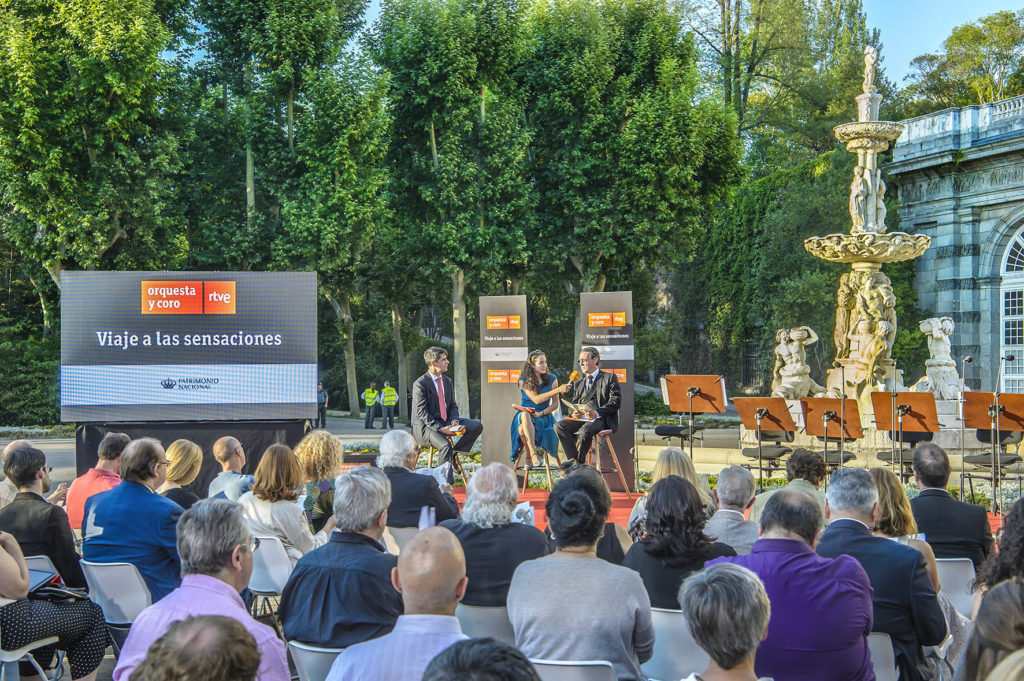 En un acto celebrado en los Jardines del Campo del Moro, en el Palacio Real de Madrid, la Orquesta Sinfónica y Coro RTVE ha presentado su nueva temporada de abono 2017/18 cuyo título, ‘Viaje a las sensaciones’, invita al público a emprender una apasionante aventura al centro de sus emociones a través de los grandes clásicos de la historia universal, desde el Clasicismo hasta la creación actual.