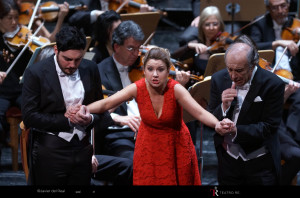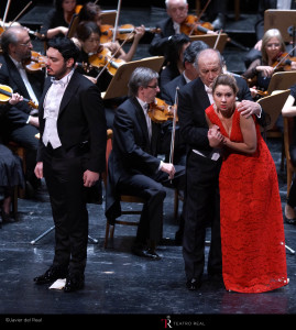 R. Tengo a mi favor el haber contado con James Conlon, un maestro tan grande que aunque cantes con él en versión concertante, consigue hacer creer que es con escena. Con la música te abduce, porque tiene una extraordinaria idea de los tempi. Para colmo, hemos tenido la suerte de tener junto a nosotros a Nucci, uno de los grandes intérpretes verdianos de todos los tiempos. Lo que Nucci toca se convierte en puro Verdi. Por todo ello, lo único que puedo decir es que me considero honrado por todas esas cosas en conjunto, y un gran privilegiado por haber estado aquí.