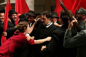 “Vísperas sicilianas” es obra que se programa con cuentagotas. Perteneciente a la otra gran “Trilogía” verdiana junto con “Don Carlo” y “Forza”, requiere notables esfuerzos escénicos y canoros, fundamentalmente en las partes de tenor y soprano. Turín estrenó en marzo de 2001 la producción que llega a Bilbao. Entonces se ofreció en italiano y sin el ballet. Ahora, tras once años de ausencia en la ciudad, se ofrece en su versión original francesa, estrenada en París en 1855 y un año más tarde en la Scala, ya en italiano y aligerada. La idea, inicialmente correcta, naufraga por cuanto se ha “inventado” para Bilbao una escenificación para el ballet a base de proyectar videos durante más de media hora que no tienen nada que ver con la música de Verdi que suena, sino que viene a apoyar la filosofía en la que Davide Livermore basa su producción. La acción se traslada a la Italia de 1992, cuando los asesinatos de jueces como Falcone y Borsalino. Los opresores no son los franceses sino la casta política y la dictadura mediática, mientras que los oprimidos sicilianos resulta serlo el pueblo amante de la libertad y de una democracia secuestrada. Hay que reconocer que Livermore se ha aplicado y la propuesta, desarrollada muy cinematográficamente, interesa e incluso son pocas las veces en que choca con el libreto. Otra cosa es que estas cosas ayuden de verdad al género. Si nuestros jóvenes no tienen idea de quien fue Carrero Blanco, ¿qué les da a decir el asesinato de Falcone? Es más, incluso para quienes vivimos aquellos sucesos resultarían incomprensibles muchos detalles de la escenificación si no fuese por las amplias y sólidas explicaciones del regista en el programa de mano. Lástima que sobren 25 de los 30 minutos de los videos proyectados durante el ballet, dedicados a los movimientos antisistema -15M a gogó-  y a las políticas española e italiana. Francamente, hubiera sido menos demagógico y más honesto acudir, hablando de mafias y terrorismo, a un ejemplo mucho más próximo para vascos y españoles. Gran parte del público reaccionó airadamente, como era lógico. Lástima porque distanció de una representación con muchos valores, entre ellos las cinematográficas escenas en exteriores.