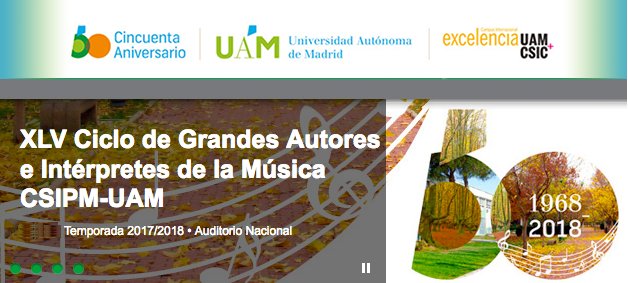 La Universidad Autónoma de Madrid (UAM) ha convocado la XLV edición de su Ciclo de Grandes Autores e Intérpretes de la Música, cuyos abonos ya se pueden comprar para no perderse los nueve conciertos organizados, cuatro de ellos en la Sala Sinfónica y cinco en la Sala de Cámara del Auditorio Nacional de Madrid.